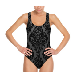Shorty de Nage aux Motif Baroque sur fond satiné noir