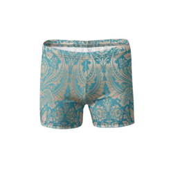 Ce paréo en soir artificielle sera parfaitement assorti à vos yeux surtout s'ils sont bleus. Les motifs baroques vieil or sur fond turquoise font de cette étoffe la pièce précieuse de votre dressing de l'été.